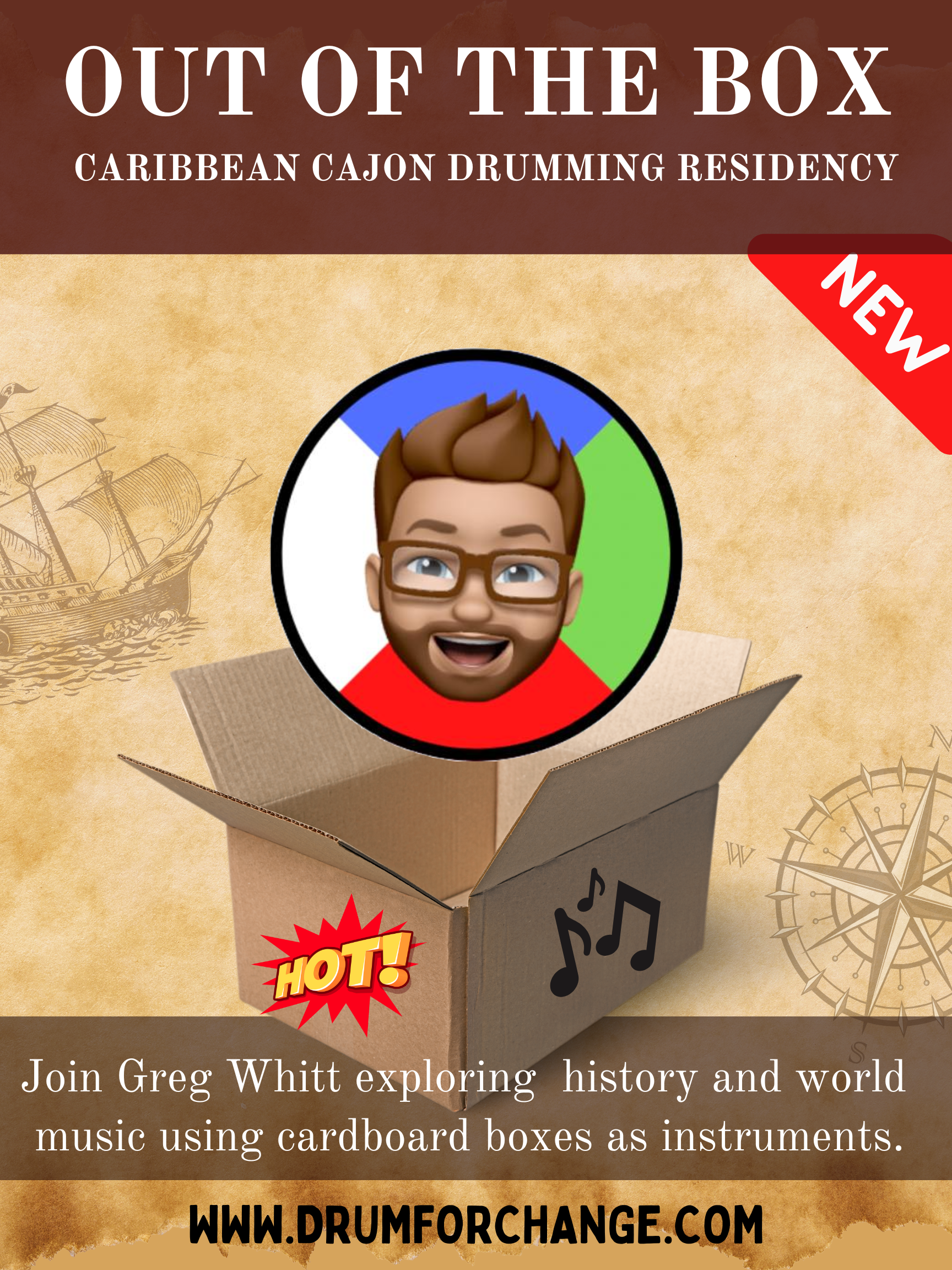 The cajon drum originated in Peru and gained global popularity for its sound and simplicity. Students provide their own cardboard box as an easy, accessible instrument for learning music of the Caribbean.